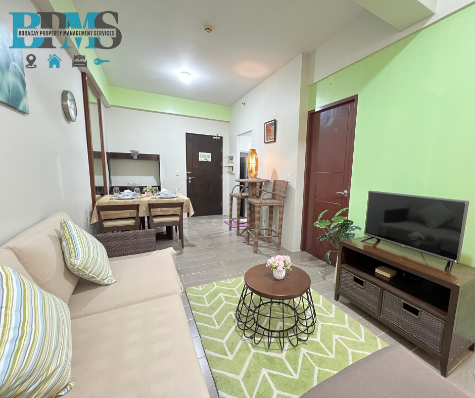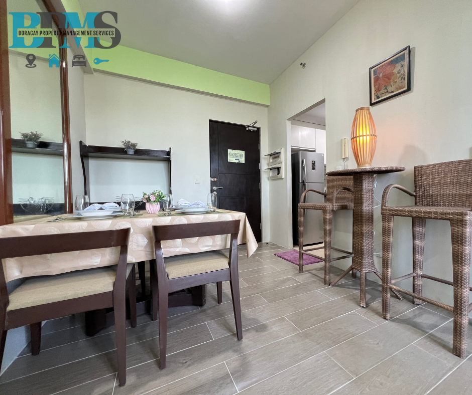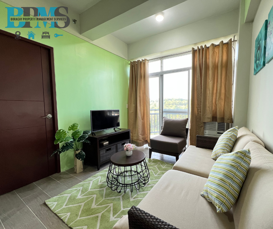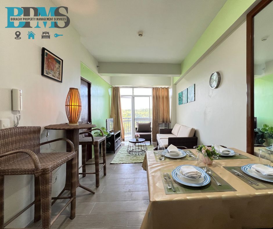 The spacious living room flows into a fully-equipped kitchen, perfect for dining and relaxation. Enjoy resort-style amenities including a sparkling pool and 24-hour concierge service. A perfect retreat where luxury meets tranquility.